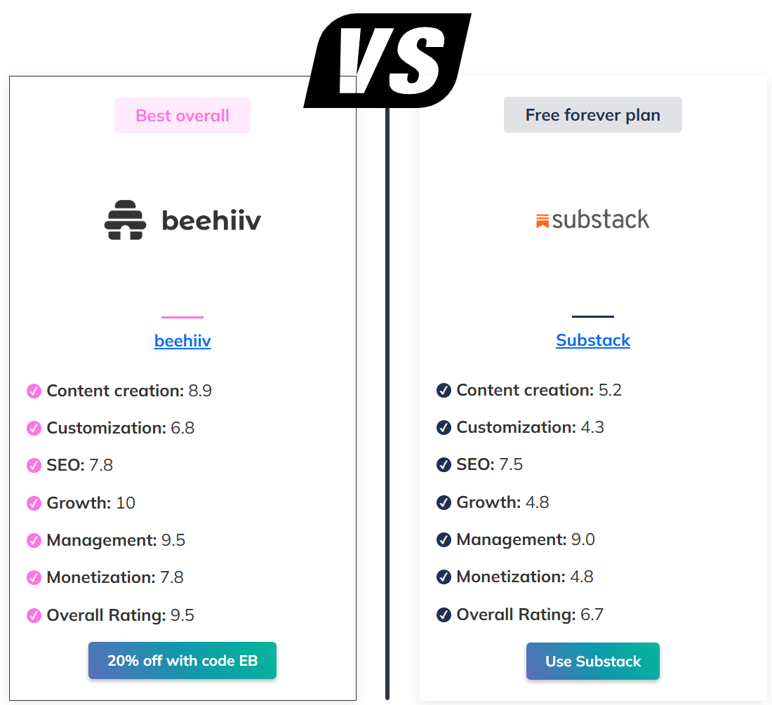 Newsletter growth is beehiiv’s main advantage over Substack. It allows integrations, has a newsletter referral program, and automated email sequences. Substack doesn’t have any of these features.