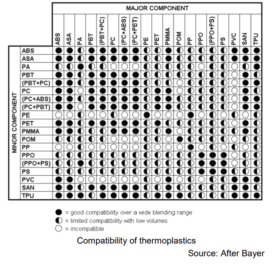 Common polymers such as polypropylene (PP), polyethylene (PE), ABS Plastic, PC and PS are already recyling at scale.