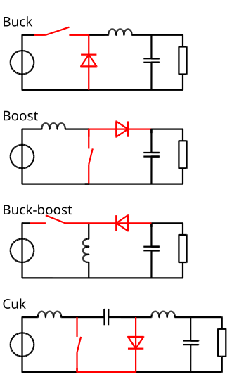 - Switch is between input and inductor